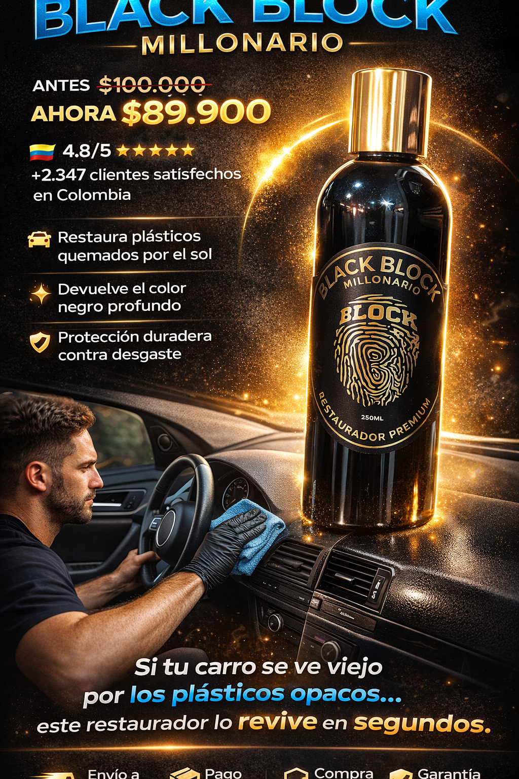 Disponible en Colombia, para que disfrutes de una restauración impecable y un acabado elegante que perdura. ¡Renueva y protege tus plásticos con Black Block y luce siempre impecable!