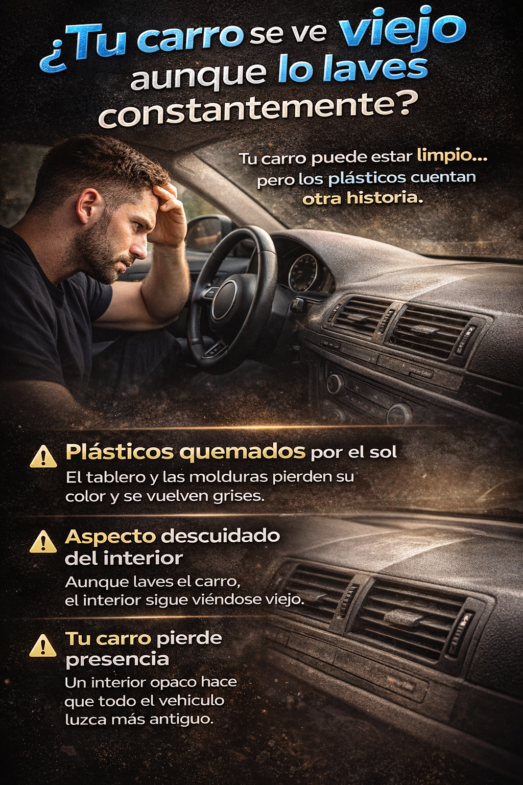 Descubre Black Block, la solución definitiva para devolverle el color original y el brillo intenso a tus plásticos y molduras negras. Olvídate del gris opaco que envejece y opaca la apariencia de tus vehículos o espacios, y dale un acabado premium con una protección duradera que resalta la elegancia en cada detalle.