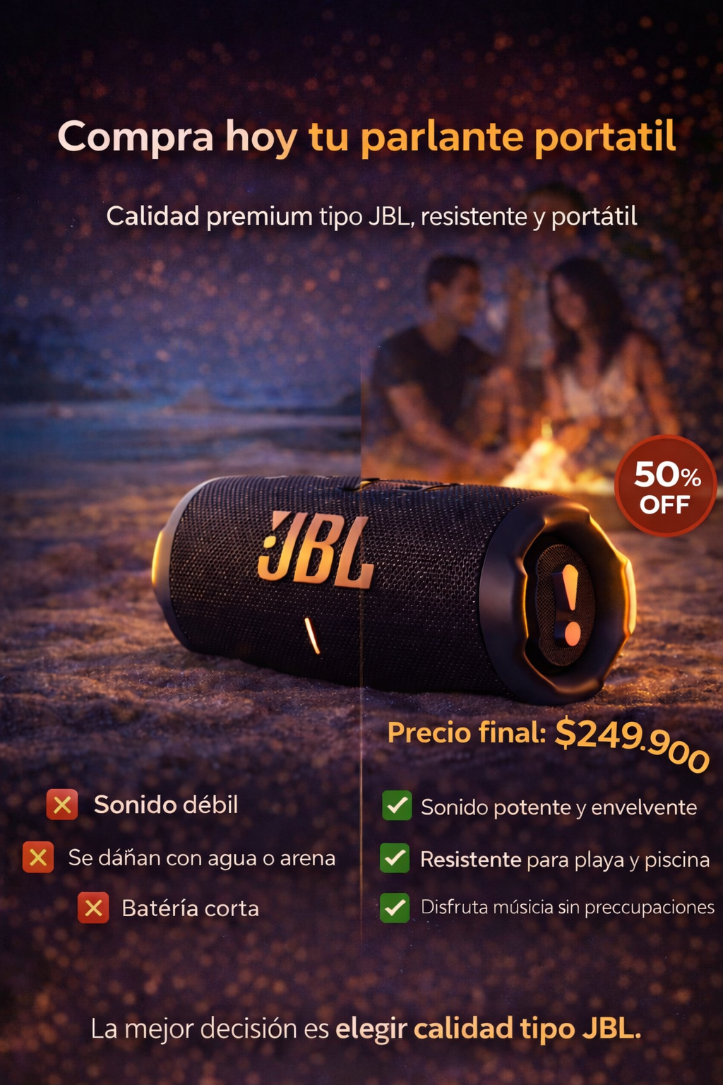 Porque es un parlante diseñado para durar, sonar fuerte y verse increíble. No es una imitación, es JBL: marca reconocida mundialmente por su calidad, potencia y confiabilidad 🔥🔊